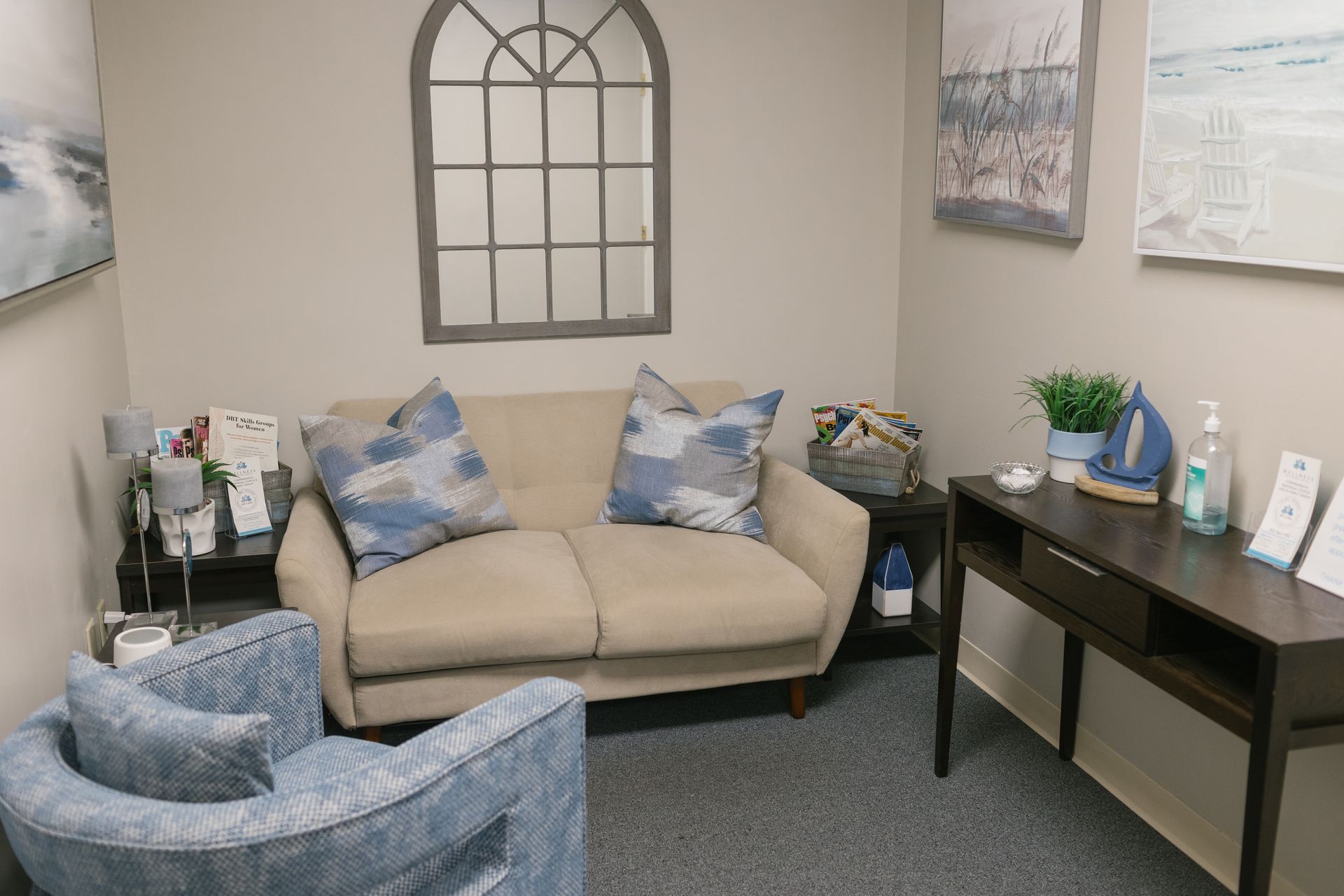We believe that a relaxing and therapeutic environment lays the foundation for feeling safe, comfortable and open with your psychologist. Our office in Tampa, FL, is uniquely situated in a hidden gem of a building right on the water with views of Tampa Bay. Many clients comment that the view on its own is therapeutic!